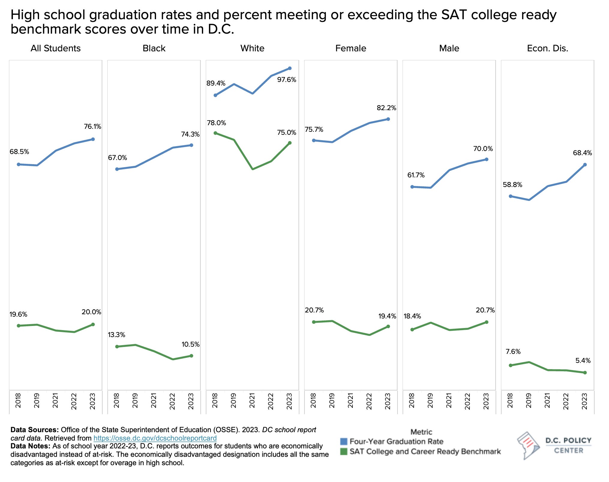 . He claimed vague associations with Harvard, Georgetown, and MIT, and various post-graduate programs in other places. Not quite a year after failing to get his EdD, Roberts was in charge of training other principals in Baltimore, then moved on to Washington DC where he became “Principal and Managing Director of School Turnaround for District of Columbia Public Schools (DCPS).” Anyone turning around in a DC public school is likely spinning as a result of being hit by stray bullets, so Roberts had little sustained impact there, but the school board in similarly benighted St. Louis, Missouri was evidently impressed by Roberts being given the “Washington DC Principal of the Year Award” from George Washington University, which was all the more amazing given that the prize doesn't exist. They invited Roberts in for his first stint as a superintendent.The headline for the article reads “Rising Graduation Rates and Falling SAT Scores for D.C. Students,” which makes exactly the sense you think it does.