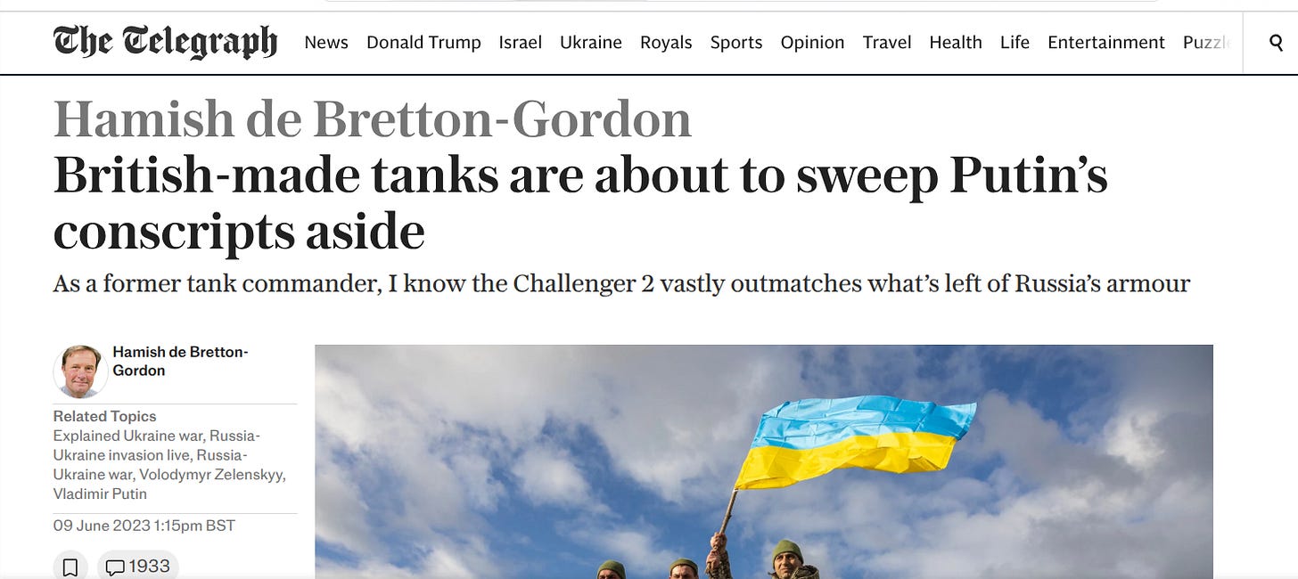 It’s understandable, even noble, for Ukrainians to cling to hope of victory. It’s far less excusable for people otherwise unimpacted by the conflict to do so. If one’s Standing With Ukraine is limited to switching his profile picture to a blue and yellow flag and reposting warmed-over twaddle from “Intelligence Community” hacks, it’s difficult to see any virtue in his urging other people, far away, to die for a cause to which he contributes mainly by hitting the like button a few hundred times a day.