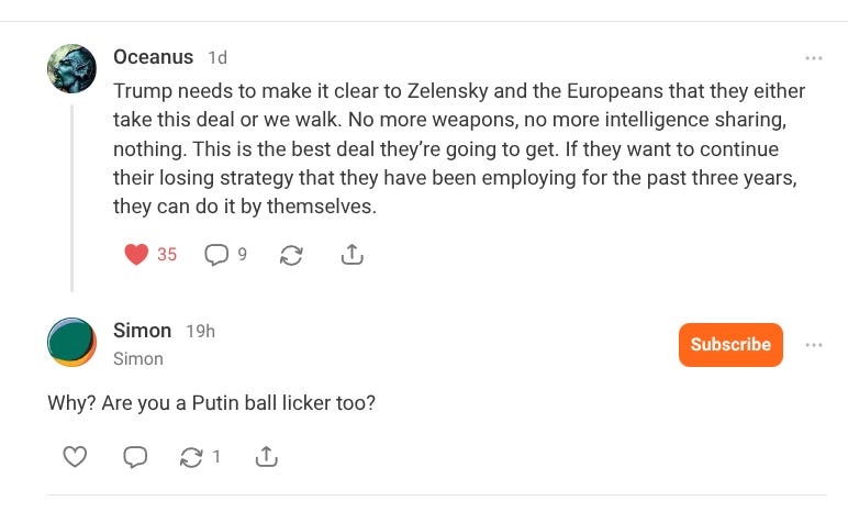 By way of example, this was left as a comment on a restack I posted a couple of days ago, and I thought it perfectly illustrated what I mean.
