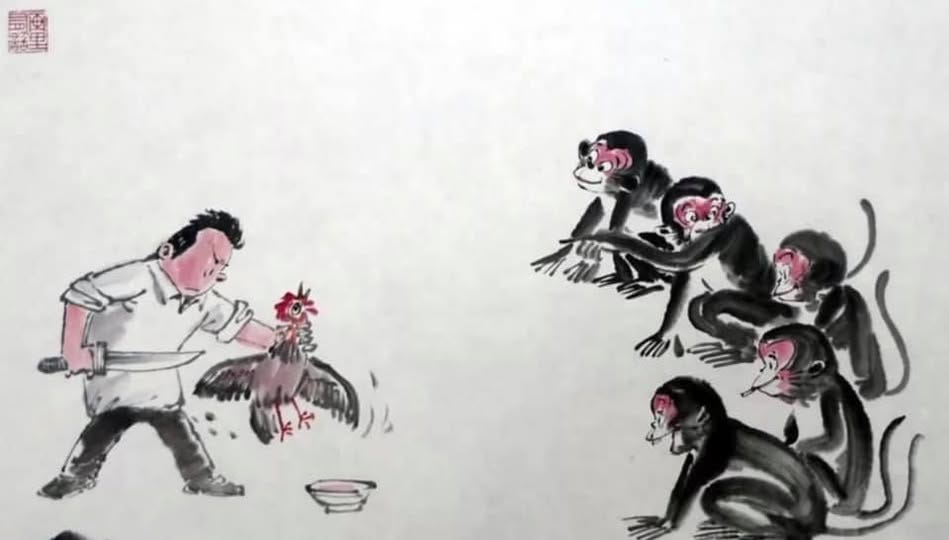 杀鸡儆猴 Honestly, the monkeys don’t look that scared. Like gunpowder, the Chinese invented this, but don’t seem to grasp its full potential.